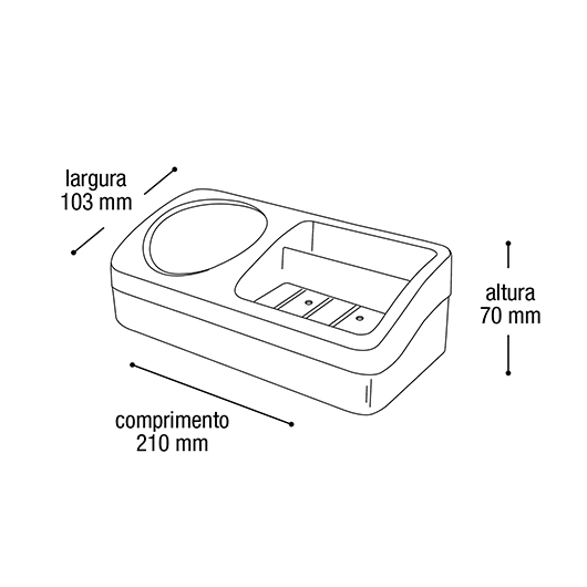 Dimensões: 210 X 103 X 70 mm (comprimento x largura x altura)